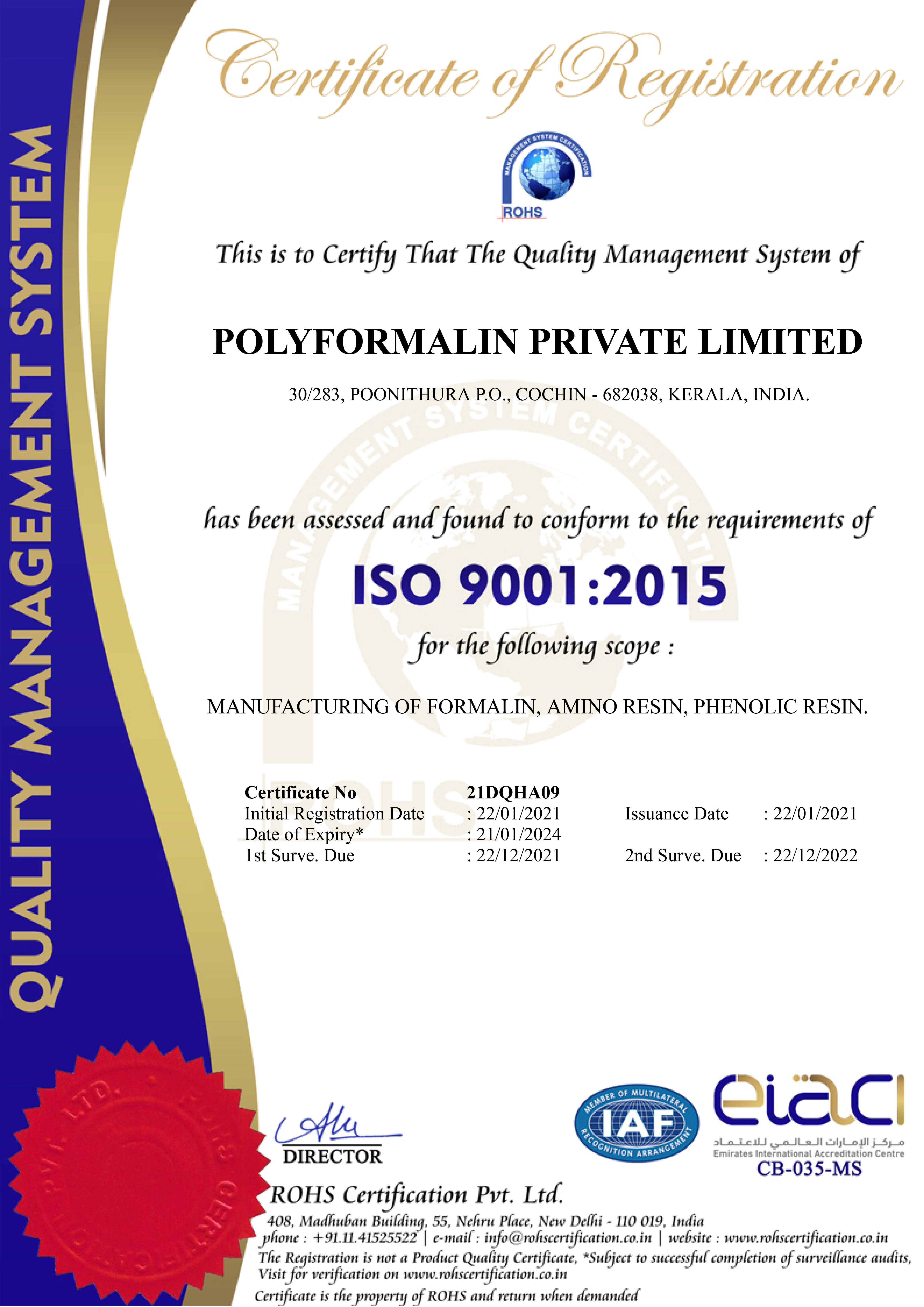 In 1975, the company chose to opt for backward integration and has been since manufacturing formaldehyde, making it the first of its kind in Kerala. In 2006, Arborites Private Limited was merged into Polyformalin Private Limited to scale up productions