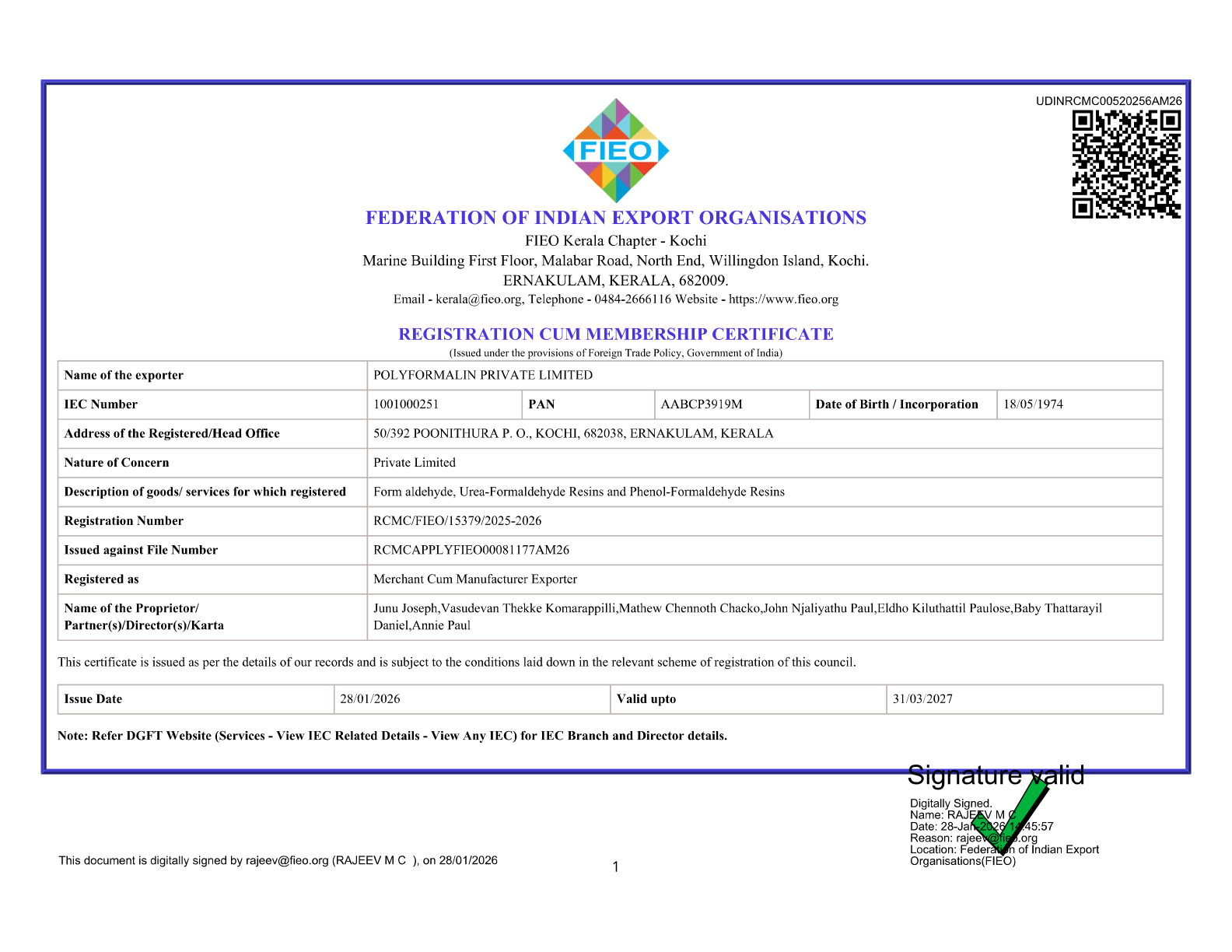 Mr. Paul saw the need and the flexibility of application of formaldehyde to be used by various industries, so he set up other units with the latest technology at Puthencruz and at Chemmand in Ernakulam district, Kerala. He introduced the concept of manufacturing high quality formaldehyde and the resins as per the specifications required by the customers and their industry-specific needs.